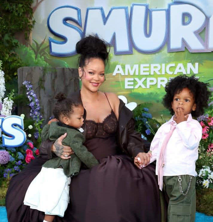 Rihanna has once again proven that she is much more than a fashion icon or a music star: she is also a committed mother, a public figure with intergenerational influence, and a true pioneer of contemporary style. Tonight in Los Angeles, she made a remarkable appearance at the joyful, family-friendly premiere of the new Smurfs movie, holding hands with her two children, Riot Rose and RZA Athelston. A rare, intimate, and powerful image that captivated the attention of fans and industry professionals alike.