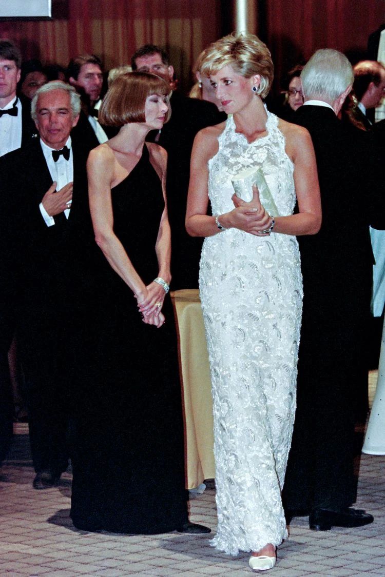 Close to the powerful, Anna Wintour has forged close ties with the icons of her time. A friend of Princess Diana, whom she supported several times in the pages of Vogue, she was also decorated by Queen Elizabeth II in 2017, receiving the title of Dame Commander of the British Empire. On the designer front, she has built strong relationships with Karl Lagerfeld, Tom Ford, and John Galliano. In the editorial department, she relied on her loyal allies: André Leon Talley, Vogue’s flamboyant and historic writer, and Grace Coddington, her creative partner, who supported her in the (re)construction of the magazine.