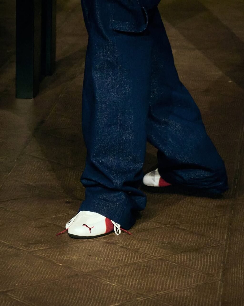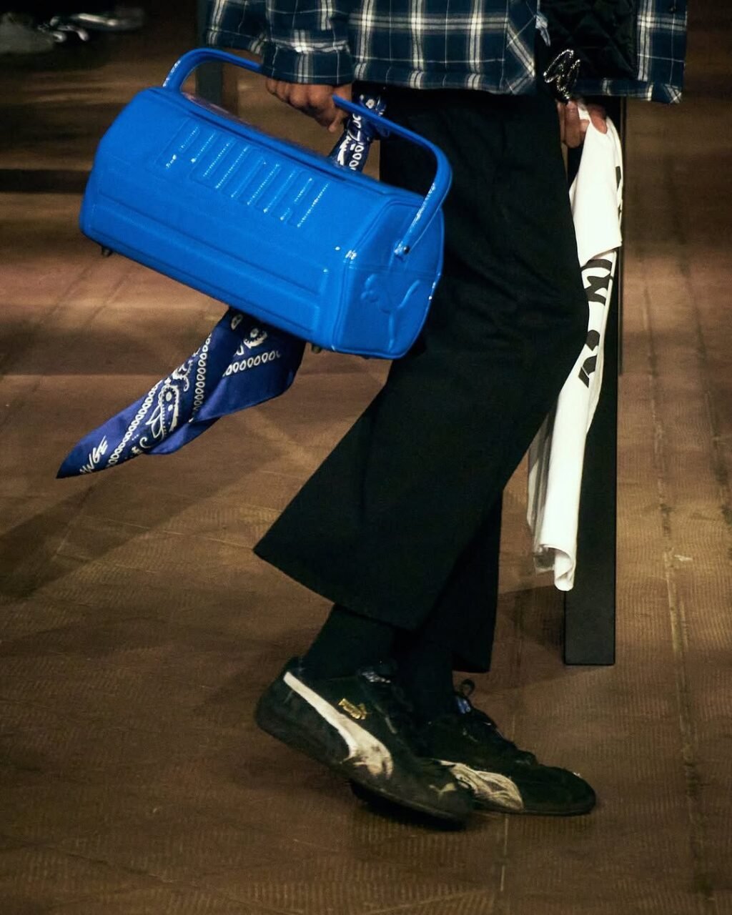 The highlight of the show? The arrival on the runway of a new range of revisited Puma Speedcats. An iconic model from the 90s, initially inspired by car racing shoes, the Speedcat is reimagined here with more modern lines, premium materials, and a range of colors that oscillate between understated tones and futuristic metallic finishes. This reinterpretation of the Speedcat is part of a desire to celebrate Puma’s sporting heritage while integrating it into the distinctive AWGE universe, blending archives and anticipation. ASAP Rocky, who became Puma’s creative director for this capsule line, once again proves his ability to combine visual storytelling with commercial relevance.
